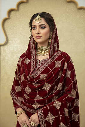 3/ Unique Style Laser Cut Embroidered Velvet Shawl